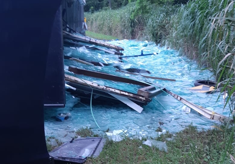Uma carreta carregada com vidros tombou na manhã desta terça-feira, 27 de janeiro, na BR-116, altura do km 781, em Leopoldina, no local conhecido como Bica D´água. Apesar do susto e dos danos materiais, não houve vítimas, e o motorista, de 32 anos, saiu ileso do acidente.