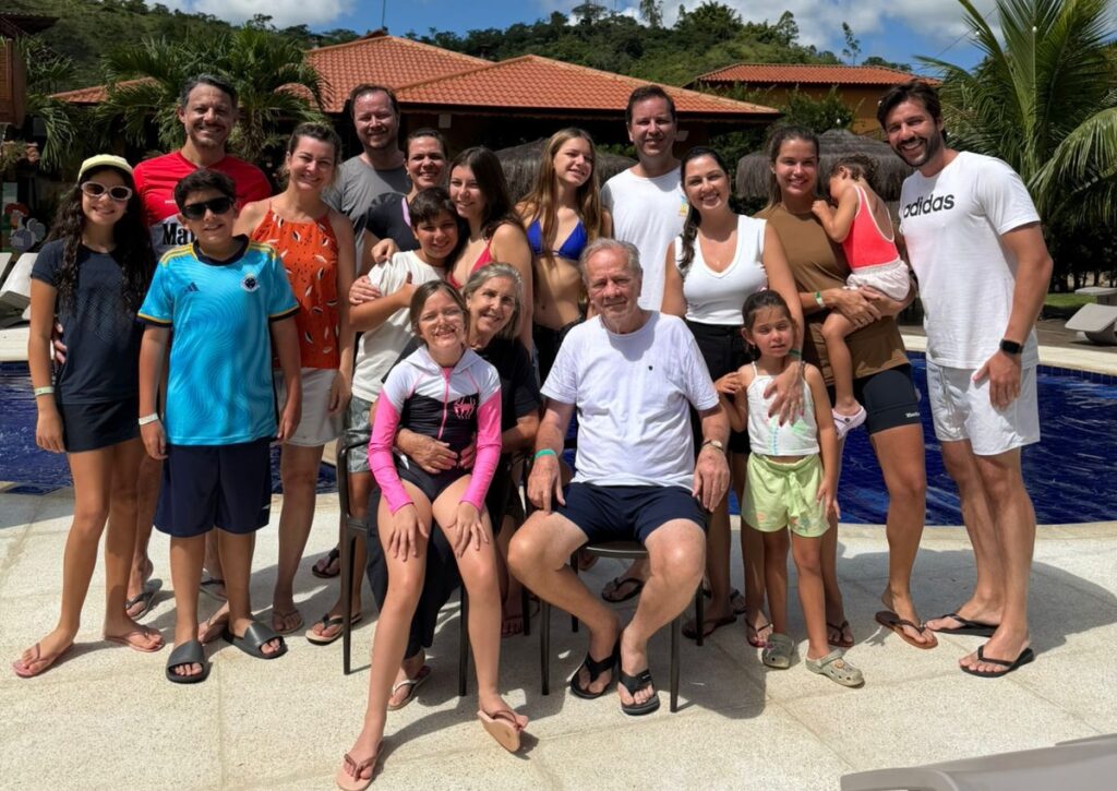 Os filhos: Paula, Marcos Jr., Rodrigo e Rafael, acompanhados, respectivamente, do genro e das noras, Flávio, Renata, Cecília e Isabela. Presentes também todos os netos e netas: Júlia, Isabel, Valentina, Matheus, Antônio, Giovana, Luísa e Aurora.