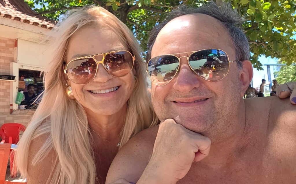 O simpático casal Dr. Ônio (Oninho) e Mariângela, “piumando” no carnaval. Felicitações da coluna! Em tempo: Oninho, animadíssimo para tentar mais um mandato no Executivo recreiense.