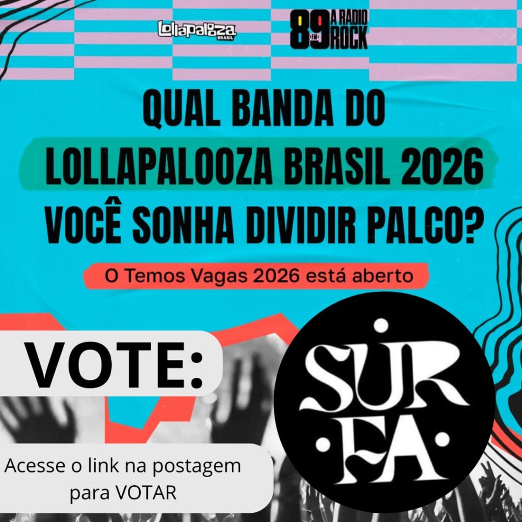 A banda SURFA está concorrendo a uma apresentação no LOLLAPALOOZA BRASIL 2026 e precisa do seu VOTO. Vamos dar uma força, maninhos e maninhas.