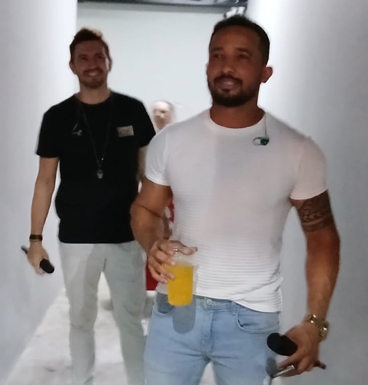 Leonardo de Freitas e Fabiano a caminho do palco.