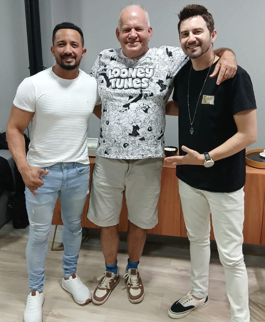 Este colunista recebido no camarim pela dupla Leonardo de Freitas & Fabiano.