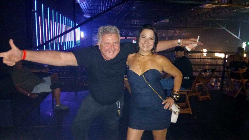 Prestigiando a noite da Stone House o casal Luizinho Gouvêa e Raquel.