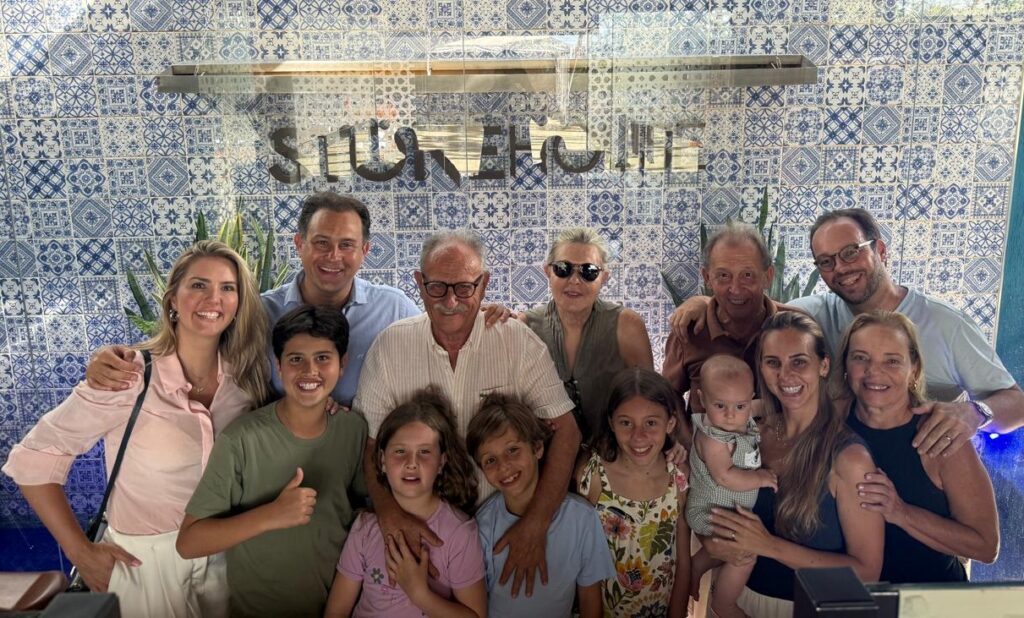 Da esquerda para a direita : Camila, Bernardo, Benício, Catarina, Pedro Augusto, Joaquim, Márcia, Valentina, Francisco (bebê), Carolina, Salviano, Maria Claudia e José Eduardo.