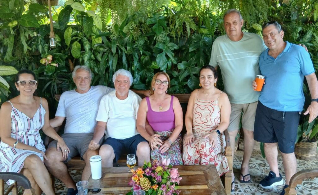 Cris, Mauro, Onofre e esposa Néia, o casal Márcia e Casé e o irmão Geninho.