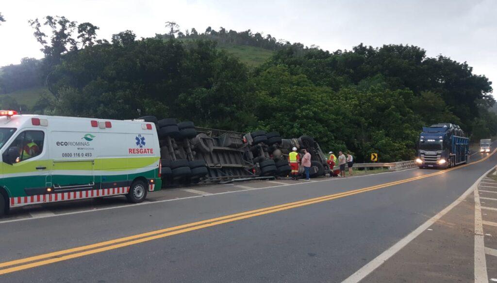 De acordo com as informações iniciais, o veículo seguia do Rio de Janeiro com destino ao Nordeste quando o motorista perdeu o controle da direção e a carreta acabou tombando às margens da pista, ficando fora da faixa de rolamento.