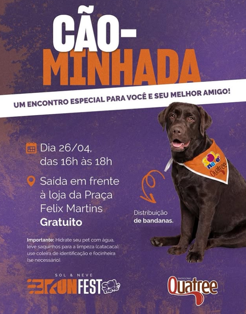 Além da corrida, a programação da Sol & Neve Run Fest também contará com a “Cãominhada”, um momento especial voltado para quem deseja participar do evento ao lado do seu pet.